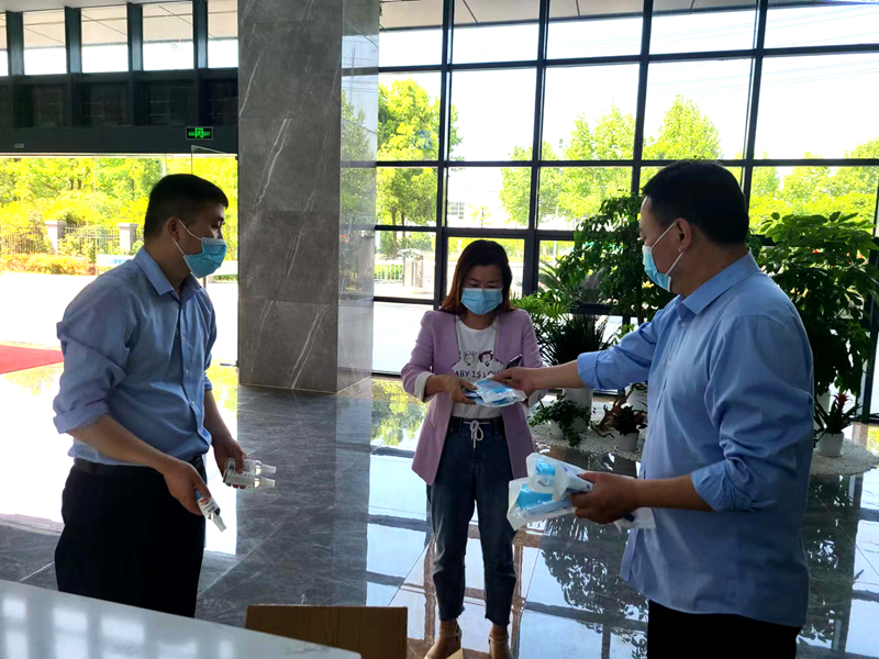 老章(右一)向同時(shí)發(fā)放防疫物資