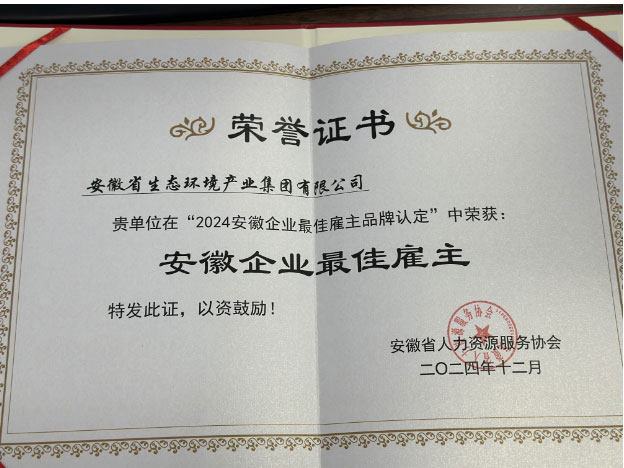 新年伊始,在由安徽省人力資源和社會保障廳指導(dǎo)、安徽省人力資源服務(wù)協(xié)會舉辦的“2024安徽企業(yè)最佳雇主品牌認(rèn)定”活動中,省生態(tài)環(huán)境集團(tuán)因出色的人力資源管理能力和良好的雇主口碑,榮獲“安徽企業(yè)最佳雇主”。