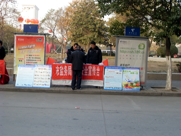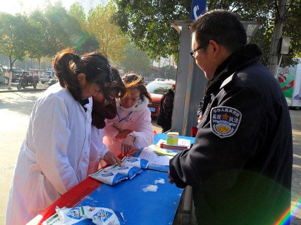 在本次活動(dòng)中,阜陽(yáng)市局設(shè)立宣傳咨詢(xún)臺(tái),宣傳展架4個(gè),擺放精心準(zhǔn)備的宣傳資料和傳單,展示近期在市場(chǎng)查獲得各類(lèi)假冒鹽品,現(xiàn)場(chǎng)接受市民咨詢(xún)散發(fā)宣傳單300余份,向群眾宣傳普及鹽業(yè)法規(guī),并推出了現(xiàn)場(chǎng)教市民辨別真假碘鹽的活動(dòng),咨詢(xún)臺(tái)前觀看宣傳圖版和前來(lái)咨詢(xún)的群眾絡(luò)繹不絕,廣大市民對(duì)國(guó)家為確保民生,食鹽專(zhuān)營(yíng)的政策深表理解和支持。市領(lǐng)導(dǎo)對(duì)宣傳點(diǎn)進(jìn)行慰問(wèn)檢查時(shí),對(duì)阜陽(yáng)市的鹽政管理給予了充分肯定和認(rèn)可,并鼓勵(lì)大家再接再厲再創(chuàng)佳績(jī)。