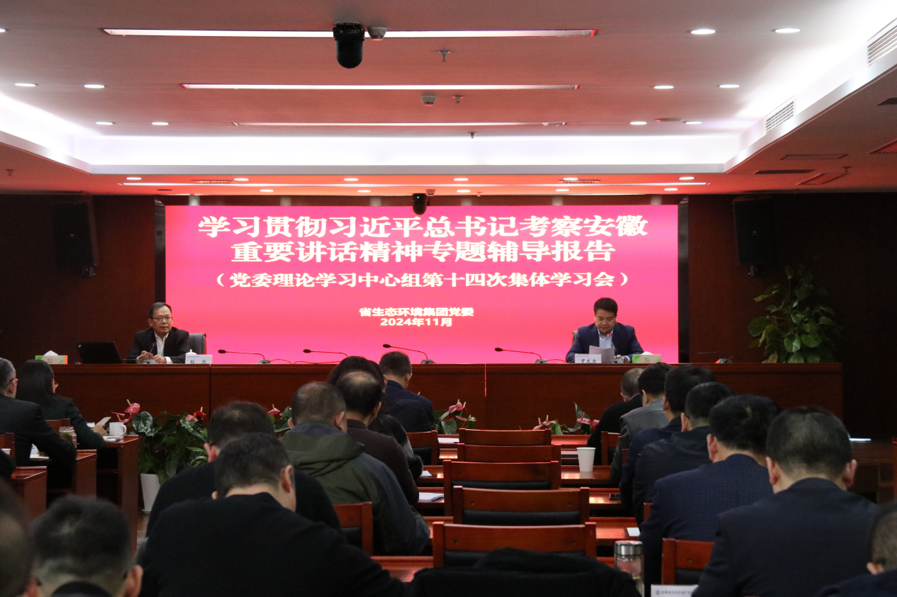 11月29日,省生態(tài)環(huán)境集團(tuán)召開學(xué)習(xí)貫徹習(xí)近平總書記考察安徽重要講話精神專題輔導(dǎo)報(bào)告會(huì)暨黨委理論學(xué)習(xí)中心組集體學(xué)習(xí)(擴(kuò)大)會(huì),邀請(qǐng)中共安徽省委講師團(tuán)團(tuán)長(zhǎng)、教授張彪作專題輔導(dǎo)報(bào)告。集團(tuán)公司黨委、經(jīng)營(yíng)班子成員,各直屬(控股)公司班子成員,集團(tuán)本部中層以上管理人員,各子公司黨員干部職工共計(jì)1000余人在主會(huì)場(chǎng)和視頻分會(huì)場(chǎng)參會(huì)。