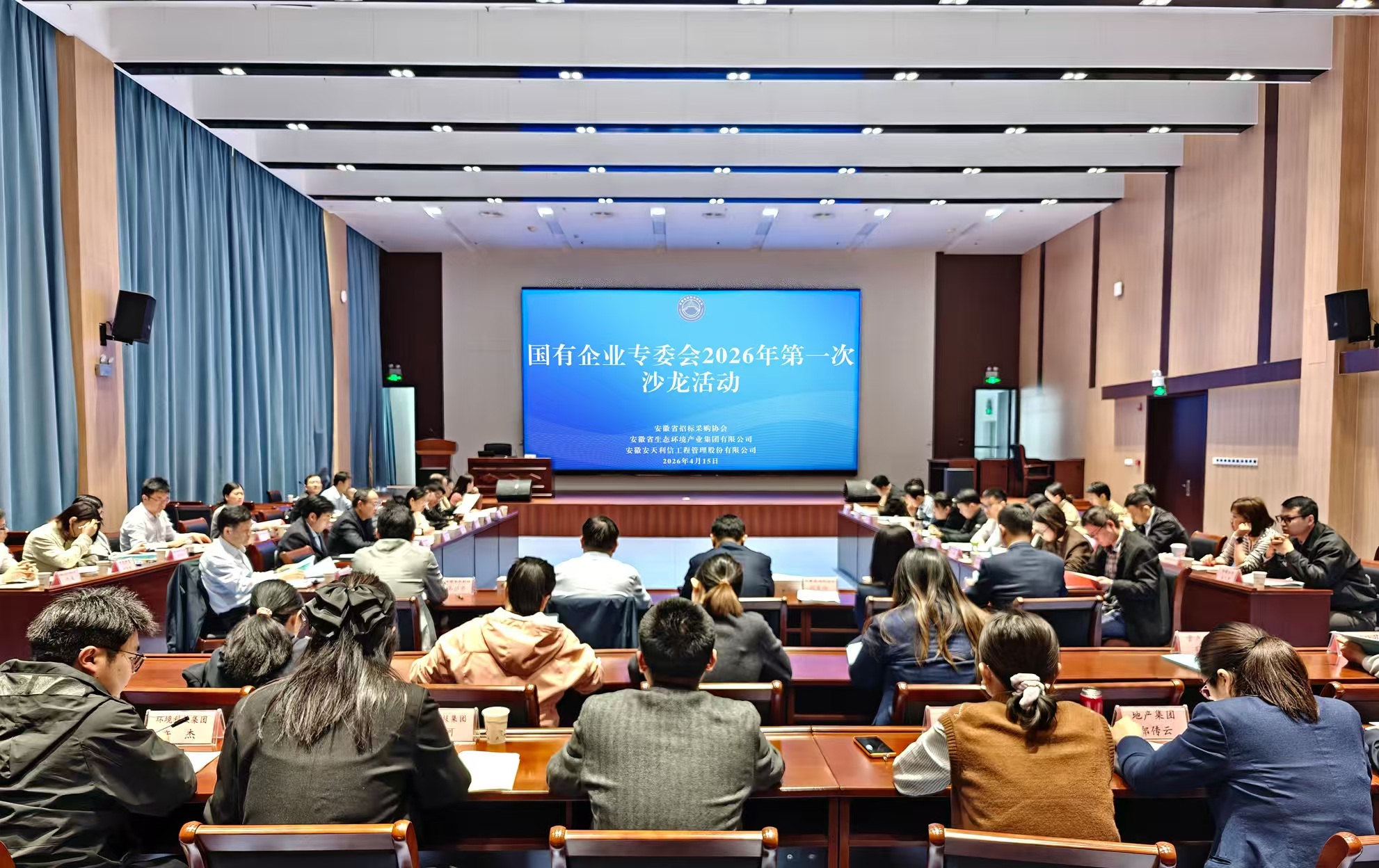 4月15日,省招標采購協(xié)會國有企業(yè)專委會2026年第一次專題研討會在安徽環(huán)境科技集團股份有限公司召開。本次研討會由安徽省招標采購協(xié)會主辦、國企專委會第九屆輪值主任單位安徽省生態(tài)環(huán)境產業(yè)集團有限公司承辦、安徽安天利信工程管理股份有限公司協(xié)辦。安徽省生態(tài)環(huán)境產業(yè)集團有限公司黨委委員、副總經理王奇,安徽省招標采購協(xié)會秘書長胡美玲出席會議,安徽省生態(tài)環(huán)境產業(yè)集團有限公司運營部部長、招采中心主任偶自如主持會議。省招協(xié)國有企業(yè)專委會部分成員單位代表共50余人參會。