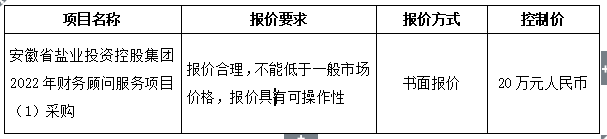 1.項目名稱:安徽省鹽業投資控股集團2022年財務顧問服務項目(1)