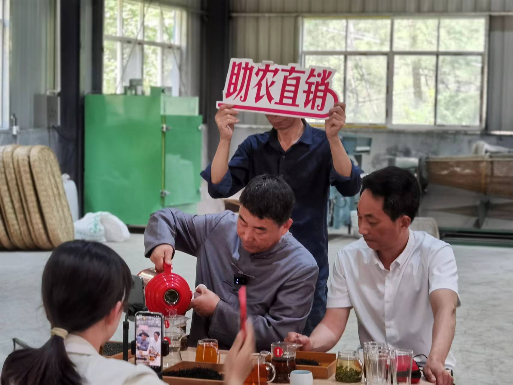 5月7日上午,安徽天方茶葉集團(tuán)董事長鄭孝和先生一行受邀來到西河村集體茶廠云谷茶廠,介紹了天方茶葉集團(tuán)助農(nóng)網(wǎng)上直銷茶葉方法和經(jīng)驗,并對云谷茶廠網(wǎng)上直銷茶葉進(jìn)行了培訓(xùn)和指導(dǎo)。上午11點,云谷茶廠室內(nèi)抖音直播銷售平臺正式上線,西河村駐村第一書記汪令富、村委負(fù)責(zé)人李運(yùn)生同天方集團(tuán)董事長鄭孝和帶著西河村生產(chǎn)的江北高山紅茶—天柱紅走進(jìn)直播間,向網(wǎng)友們在線介紹了天柱紅的種植、采摘、品質(zhì)鑒別,經(jīng)過一個多小時的直播推介,銷售天柱紅紅茶近六千元。下午2點,網(wǎng)上直播助農(nóng)直銷茶葉活動改在茶園進(jìn)行,通過實地高山茶園宣傳推介云谷茶廠生產(chǎn)的優(yōu)質(zhì)天柱紅紅茶和天柱玄月綠茶。