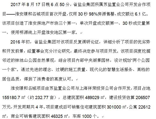 江蘇省鹽業(yè)集團(tuán)合作開發(fā)項(xiàng)目開盤30秒銷售6.1億元