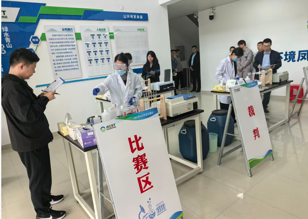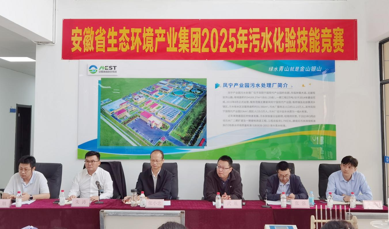 2025年10月17日,由安徽省生態(tài)環(huán)境產(chǎn)業(yè)集團(tuán)有限公司主辦、安徽環(huán)境科技集團(tuán)承辦的“2025年污水化驗技能競賽”在鳳陽寧國現(xiàn)代產(chǎn)業(yè)園污水處理廠成功舉辦。本次競賽以“水質(zhì)氨氮測定(納氏試劑分光光度法)”為核心內(nèi)容,通過模擬實操全面檢驗化驗人員的專業(yè)技能、規(guī)范意識和數(shù)據(jù)處理能力,是集團(tuán)公司加強產(chǎn)業(yè)工人隊伍建設(shè)、提升一線人才素質(zhì)的重要實踐。集團(tuán)公司黨委副書記、職工董事、工會主席張小忠出席活動并致辭。